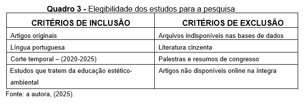 O processo seleção e inclusão de estudos para a composição desta pesquisa, está descrita a seguir no Quadro 3: